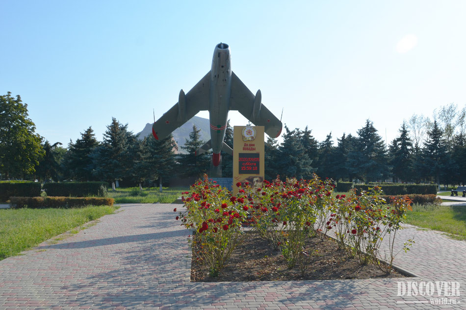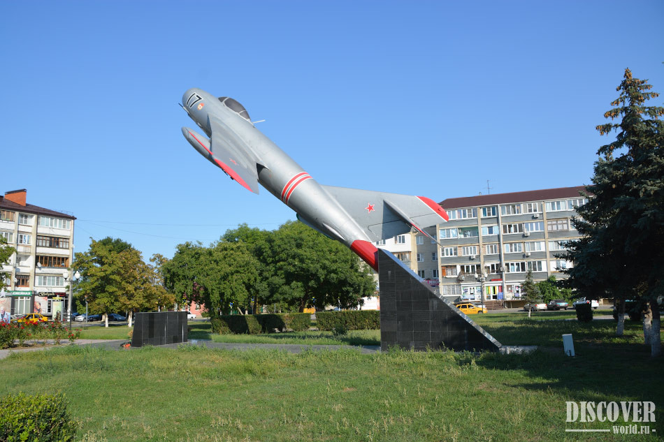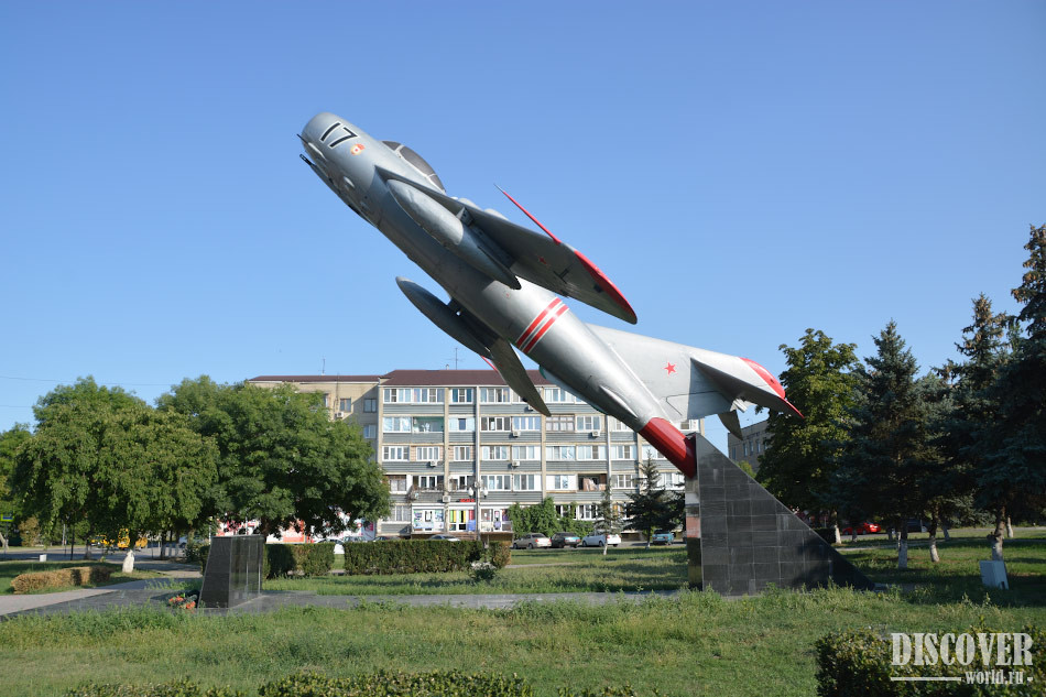 Монумент состоит из корпуса настоящего военного самолета МиГ-17 и мемориальной доски с надписью: