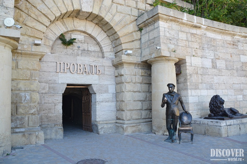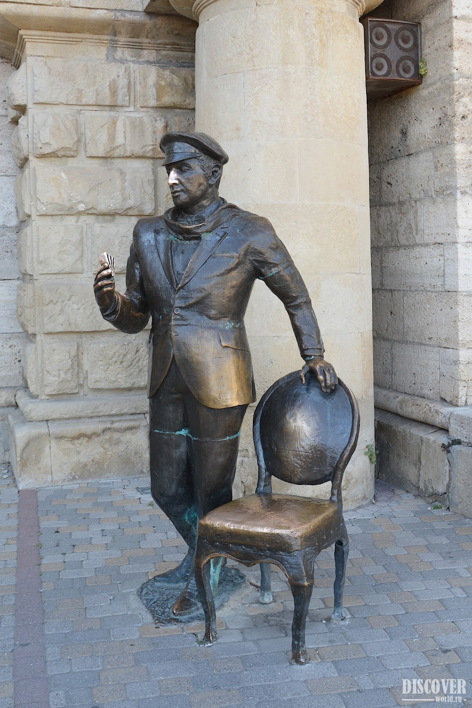 Скульптура, посвященная Остапу Бендеру располагается у входа к озеру Провал в Пятигорске.
