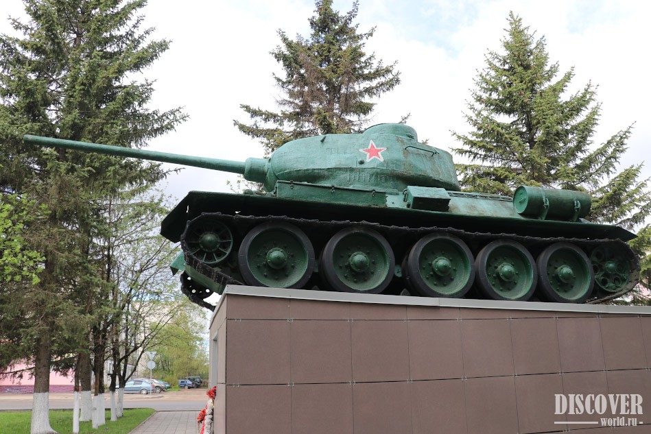 Танк Т-34 находится на площади Мира во Ржеве.