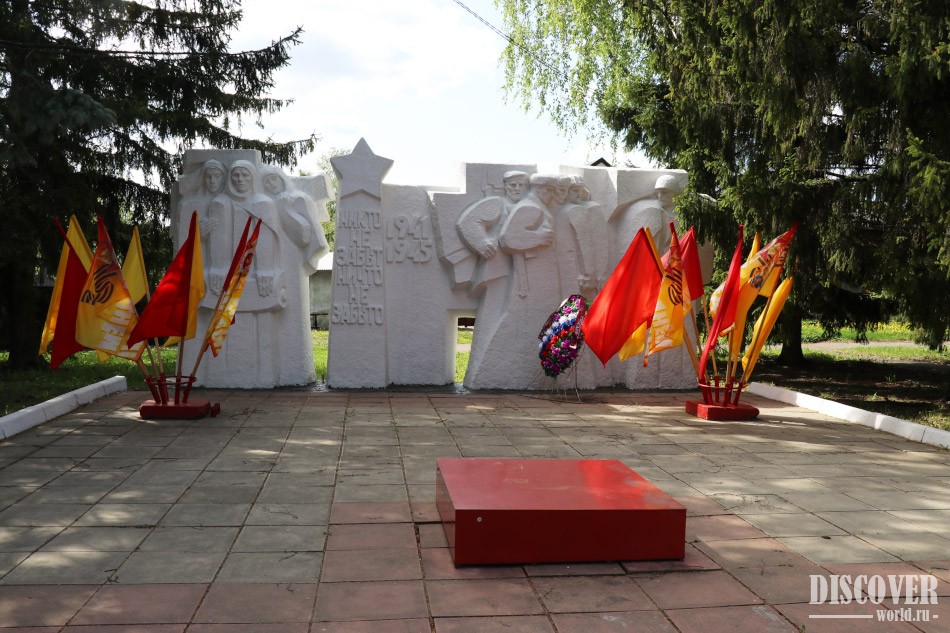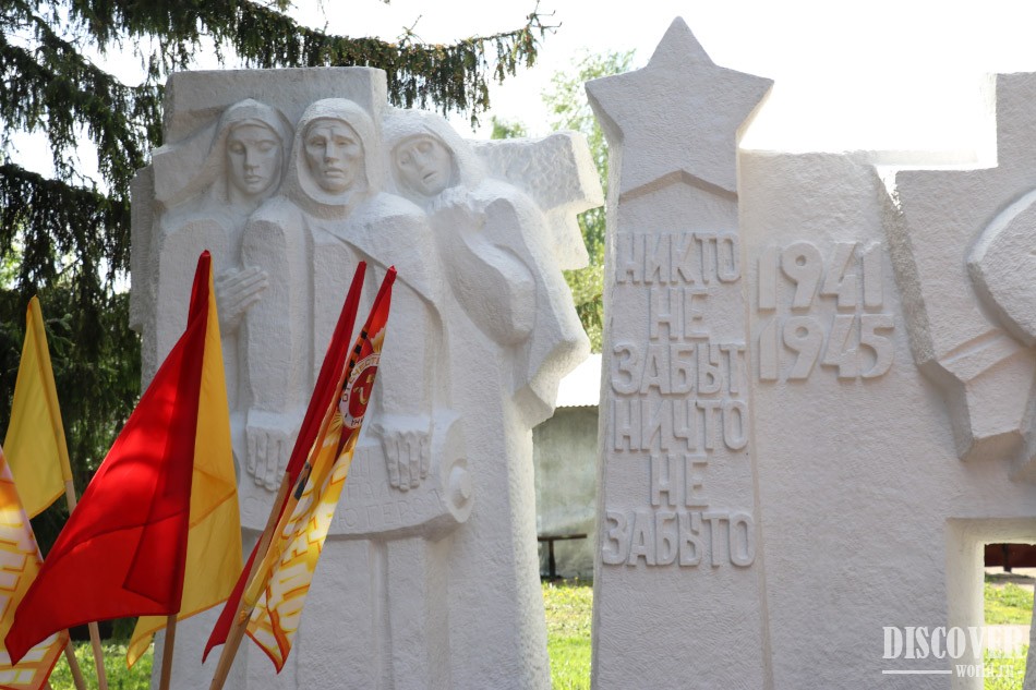 На одном из монументов изображены две группы людей - группа мужчин, уходящих на фронт и группа женщин, ожидающих их возвращения.