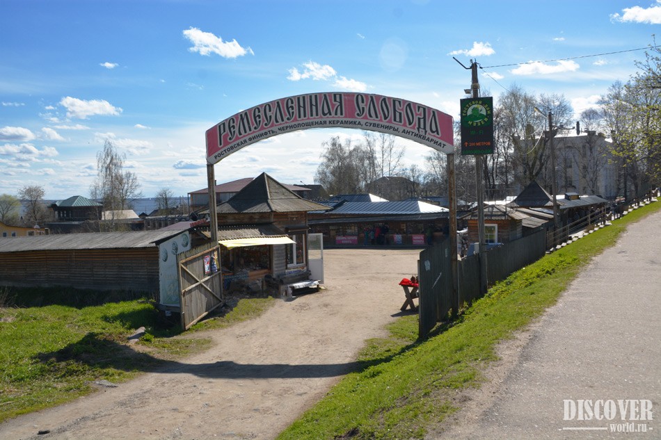 Ярмарка "Ремесленная слобода" в Ростове Великом находится в самом центре города, в нескольких шагах от ростовского кремля.