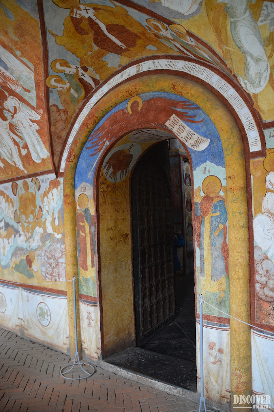 Посмотреть церковь изнутри можно, приобретя на кассе билет на "Переходы по стенам кремля с видом на озеро Неро":