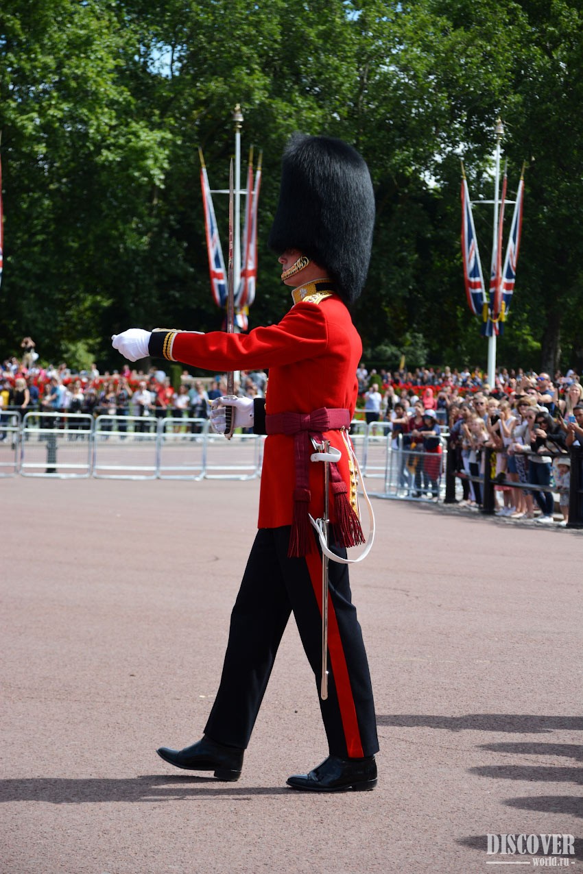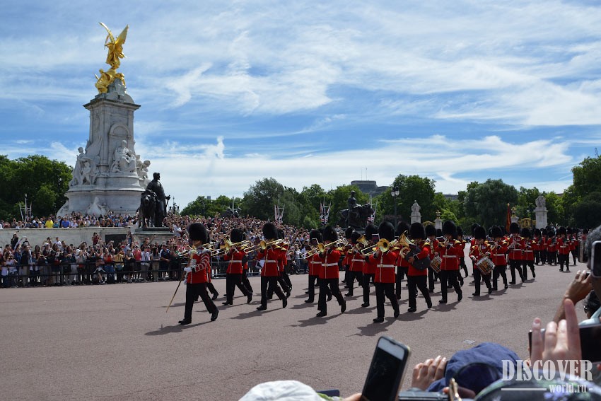 Суть церемонии - смена старых караульных на новых. К караулу Букингемского дворца присоединяются караульные из Сент-Джеймсского дворца (St James’s Palace) и они ожидают когда к ним придет новая смена из казарм Веллингтона. События разворачиваются под музыку оркестра.